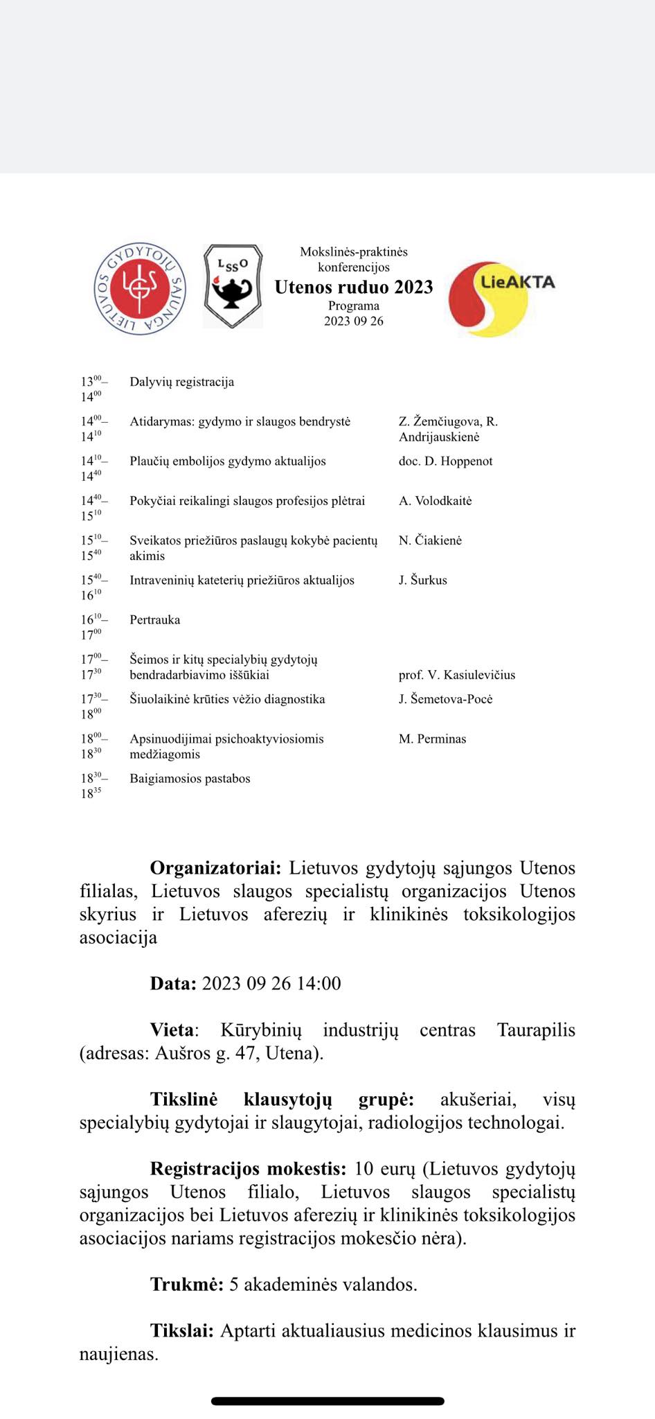 Konferencija gydytojams ir slaugytojams Utenoje, 2023-09-26